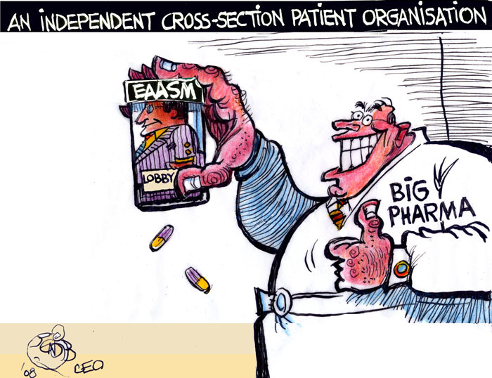 L’EAASM se présente elle-même comme « un partenariat indépendant réunissant différents acteurs du milieu et de l’industrie de la santé pour la défense de la sécurité des patients en lutte contre les médicaments contrefaits et de qualité inférieure des chaînes d’approvisionnement. » En juillet 2008, l’Alliance publie le rapport « L’autoroute de la contrefaçon – la menace croissante des pharmacies en ligne » qui a été mis à l’honneur au Parlement européen en septembre dernier au cours d’une réception et qui a donné lieu à une exposition au sein même du Parlement européen. Dans son enquête et dans le communiqué de presse qui l’accompagne (« Mort sur le Net ? Plus de 60% des médicaments vendus en ligne sont contrefaits »), l’EAASM a omis de signaler que de grands groupes pharmaceutiques avaient activement participé à ce travail. L’EAASM est entièrement financée par les grands groupes pharmaceutiques Bayer-Schering, Boehringer Ingelheim, Eli Lilly, Johnson & Johnson, Pfizer et Wyeth, ainsi que par trois entreprises de plus petite taille proposant des services connexes. Des représentants des groupes pharmaceutiques Bayer-Schering, Eli Lilly et Pfizer siègent au conseil d’administration de l’EAASM. Le cabinet de relations publiques Medicom établi à Londres prend en charge le secrétariat d’EAASM. Medicom s’est chargé de la diffusion du communiqué de presse sur le rapport ; le cabinet est d’ailleurs la seule adresse de contact mentionnée dans l’étude et répond aux questions sur l’EAASM. Jusqu’en janvier 2008, Martin Ellis, directeur de Medicom Group, était également directeur de l’EAASM. Ni Medicom, ni l’EAASM ne figurent à ce jour au registre facultatif des représentants d’intérêts mis en place par la Commission européenne. Le problème que représentent ces pharmacies virtuelles suspectes proposant des médicaments contrefaits est bien réel. Cependant, le rapport « L’autoroute de la contrefaçon » grossit l’ampleur du problème : l’échantillon de pharmacies en ligne a été établi en entrant dans un moteur de recherche des termes comme « pharmacie en ligne » ou « achetez vos médicaments moins cher » et en utilisant les liens donnés dans des pourriels. Il n’est donc pas surprenant que la majorité des pharmacies en ligne constituant l’échantillon se soient révélées, sous leurs faux airs de pharmacies virtuelles, être des sites Internet frauduleux. Un échantillon aussi partial que celui-ci est très utile pour dénoncer le commerce pharmaceutique sur Internet, ce qui correspond à l’ordre du jour des entreprises qui ont financé ce rapport mais dont le nom en reste absent. En novembre 2007, l’EAASM avait déjà publié un rapport qui s’attaquait au commerce parallèle de médicaments en le présentant comme un sérieux danger pour la santé des patients. Le commerce parallèle de médicaments porte atteinte aux pratiques des entreprises pharmaceutiques qui vendent les mêmes médicaments à des prix plus élevés dans certains États membres. Votez pour l’EAASM si vous ne cautionnez pas cette mascarade des intérêts de grands groupes pharmaceutiques. Pour plus d’informations :